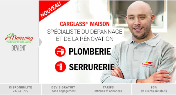 Or, c’est dans le domaine de la maison que Carglass a choisi d’investir, jouant sur sa connaissance de la relation avec les particuliers et sa capacité à inspirer confiance par une qualité de prestation homogène et réputée de haut niveau. Carglass s’appuie également sur la forte notoriété de sa marque, en renommant Maisoning en janvier 2019 « Carglass Maison » et en affichant une promesse forte de disponibilité (7 jours sur 7, 24 heures sur 24) et de qualité de service.